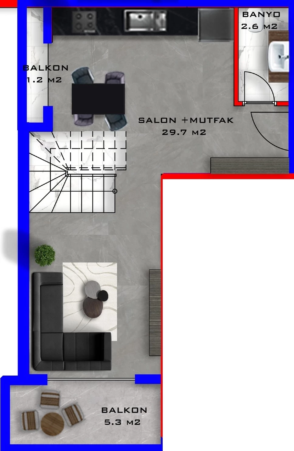 Wohnung zum Verkauf in Alanya. Fläche m²: 100, Zimmer: 2+1 duplex, Preis: 180 000 Euro. (ID 450)