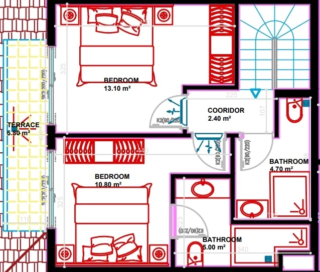 Кол-во ұйықтайтын бөлме: 2