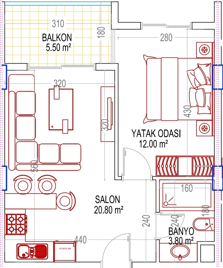 Продается квартира в Аланья. Площадь,м: 53, комнат: 1+1, цена: 148 000 евро. (ID 473)