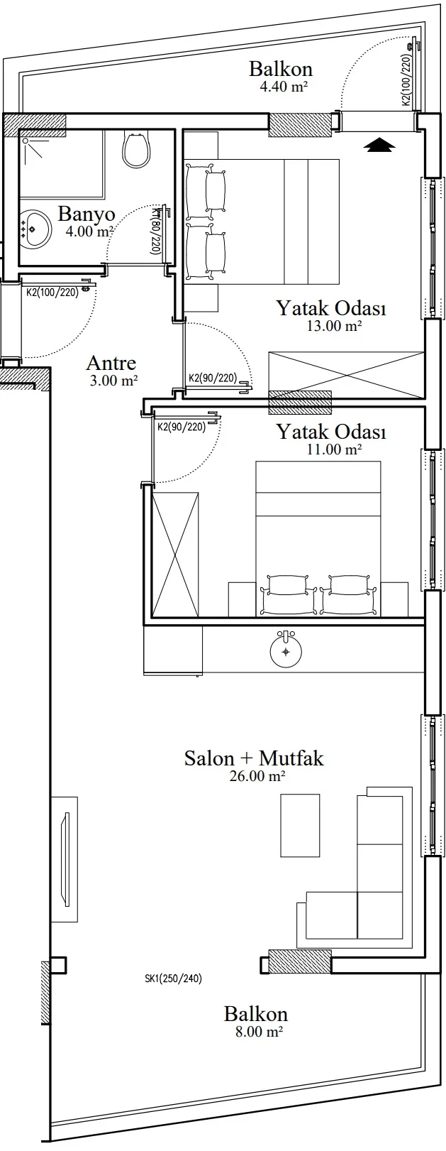 Продается квартира в Аланья. Площадь,м: 82, комнат: 2+1, цена: 261 900 евро. (ID 504)